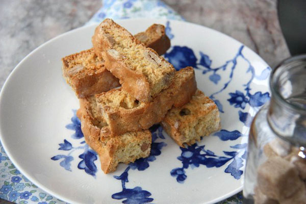 Los biscotti, son uno de los dulces más apreciados de la gastronomía toscana, en el centro-norte de Italia. Es una especie de pan seco, duro, de almendra, tradicionalmente. Su nombre “bis-cotti”, significa “cocido dos veces”, y equivale al español bizcocho, y al francés (y posteriormente al inglés) biscuit.