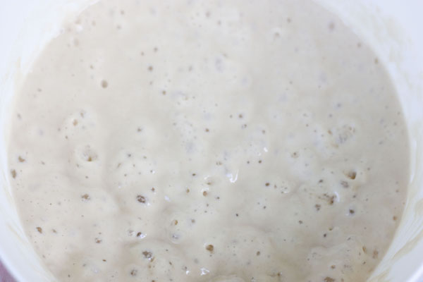 Con el prefermento ya activo comenzamos a preparar la masa final.