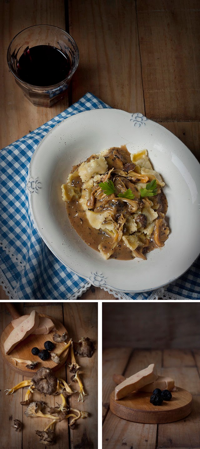 Se trata de unos ravioli del plin, rellenos de carne y con una salsa que es de esas que no puede faltar en ningún recetario, una salsa Périgueux, con la base de nuestro Demi-Glaze de hace unos días, trufa negra, Cantharellus y montada ni mas ni menos que con foie. ¿Que? ¿No os parece un plato de esos de grandes ocasiones ? Y sobre todo, es que está de morirse a plazos.