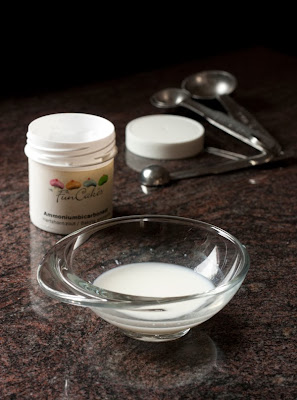 1.- Mezclamos el carbonato de amonio con 1 cucharada de leche o nata y lo dejamos reposar entre 30-60 minutos para que se disuelva.