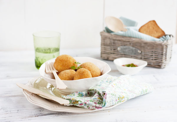 Como véis es un aperitivo muy completo, que se puede preparar con restos de arroz de risotto o arroz caldoso que nos hayan sobrado. Es rico, si pero me quedo con nuestras croquetas de toda la vida. De todas formas os animo a que las prepareis y me deis vuestra opinión.