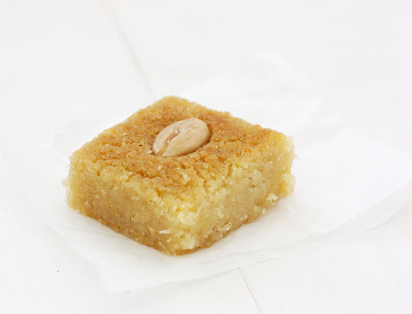Es uno de esos dulces regados con almíbar, y que es muy sencillito de realizar. En este caso se trata de una especie de pastel realizado a base de sémolafina y a veces a también una pequeña proporción de harina, acompañado, de mantequilla y coco, que resulta deliciosamente húmedo regado con el almíbar. No tiene mas misterio que mezclar los ingredientes, mano en ristre.