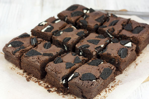 Simplemente delicioso. A los niños y adolescentes les encantará este brownie cremoso y fundente en la boca, relleno de oreos.