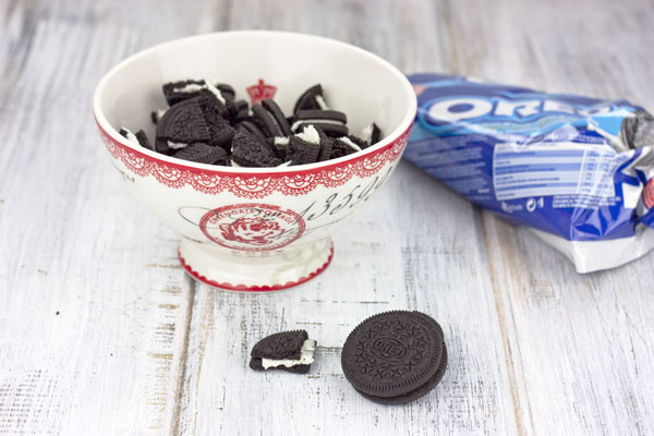 - 154 g. de galletas Oreo partidas en cuartos. (1 Paquete individual).