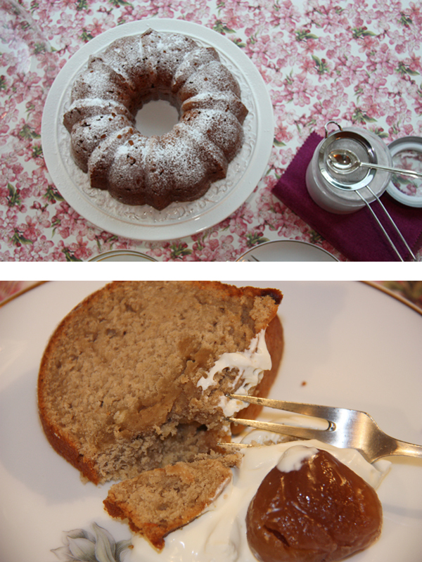 Mejor de un día para otro y perfecto acompañado de sour cream al armagnac con marron glace. Un bundt cake con un intenso sabor a castañas, jugoso, húmedo y denso, pero muy suave y delicado.