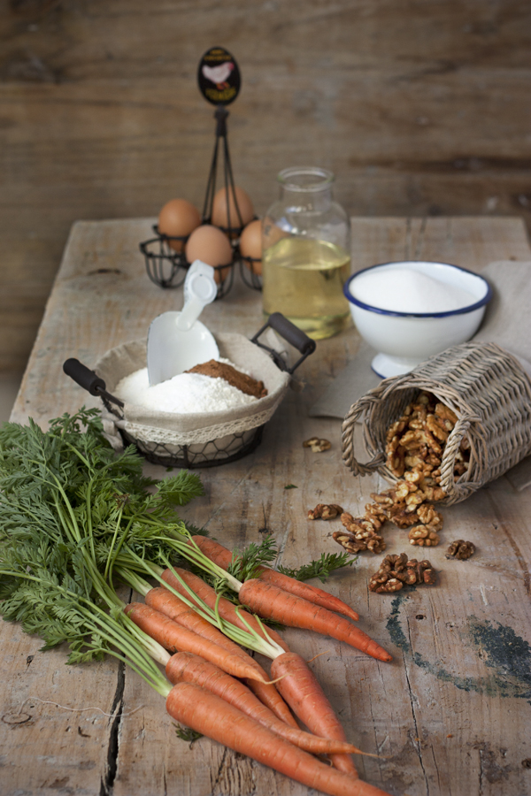 El cake es muy facilito, de hecho no habrá blog o casa que no haya preparado un carrot cake en alguna ocasión, en forma de cupcakes, de layer cake o de simple bizcocho. Eso si, cada uno con sus peculiaridades, porque este cake da para mucho juego de ingredientes. En concreto este que veis lleva, además de aceite de girasol, que lo hacen mas liviano en textura que la mantequilla, incorpora parte de los huevos en forma de claras montadas también para airearlo; especias que equilibran el dulzor del pastel; nueces y por supuesto zanahoria rallada que si bien le trasmite su dulzor, no en cambio su sabor. Por último este pastel lleva también un par de cucharadas de zumo de naranja sanguina que me quedaban por la nevera, para darle ese puntito un tanto mas ácido a la masa. El resultado me ha gustado. Por supuesto la receta en la que está basada es del Sr. Dan Lepard.