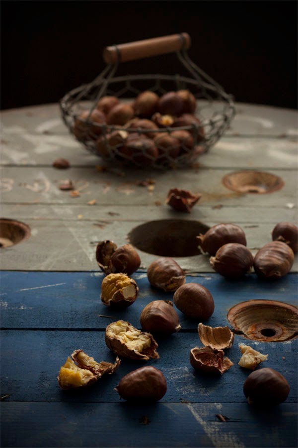 Uauhhh, haces una maravilla de unas simples castañas!! la presentación es una preciosidad, el tablero y la cesta de huevos me encantan. bsss