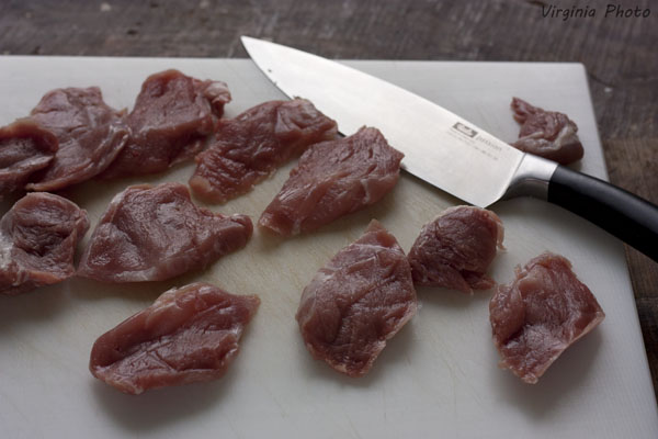 - 500 gr. de solomillo de cerdo, cortado en cuadraditos pequeños.