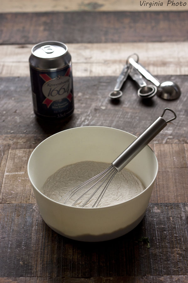 Comenzamos preparando la mezcla del rebozado. Para ello mezclamos bien la harina, la sal y la levadura y haciendo un hueco en el centro vamos vertiendo la cerveza poco a poco hasta que toda la mezcla sea una masa homogénea y sin grumos. Dejamos reposar cubierta con un paño durante media hora.