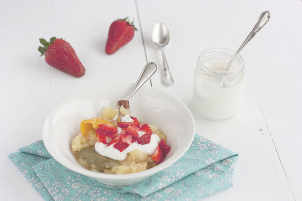 Esta entrada la preparé hace bastante tiempo, como aportaciónpara el blog de “escarabajos, bichos y mariposas“, pero desgraciadamente se quedó sin publicar. Así que ahora, pasadas estas festividades pantagruélicas, en las que de seguro hemos abusado de todo un poco, os traigo este postre, sano, rico y fácil, que viene de perillas para adaptar el organismo al día a día, tras los excesos de estas fiestas. Además se puede tener preparado con antelación en la nevera en un tarro de cristal, solo listo para calentar en el microondas si os gusta caliente.