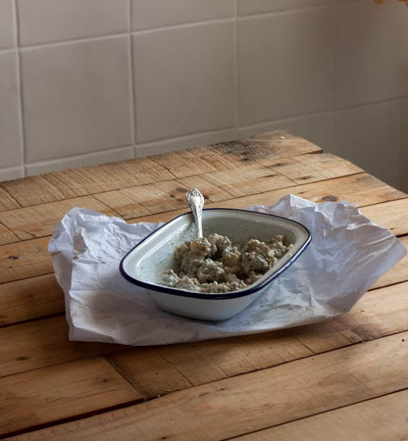 Comenzamos preparando el dip de roquefort y nueces, para que le de tiempo a ganar frío.