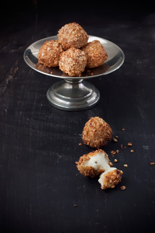 ¿Quien dijo que los Ferrero Rocher solo eran para la mesa de los invitados de Isabel? Pues nada mas lejos, que se creía Isabel y todo el séquito de esa marca comercial…., también nosotros podemos tener este plato en la nuestra, y por muy poquito dinero.Y no no se trata de esos bombones aunque a la vista bien pudiera pasar por un trampantojo. Se trata de una #RecetasSolidariasPara Navidad”, unas croquetas de Idiazabal con cobertura crujiente de avellana que están para empezar y no parar. Una receta de esas que por muy poquito dinero pueden presentarse en nuestra mesa navideña.