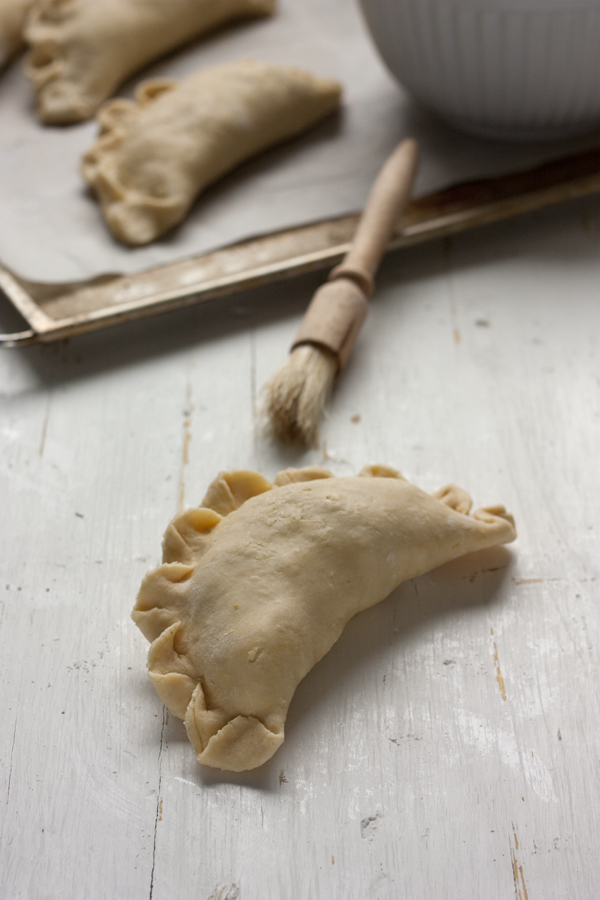 La combinación del queso crema suave, con un queso duro rallado nos permite obtener una masa semi-hojaldrada, que se puede preparar rápida y fácilmente, y además con sabor. Esta masa se convierte en una envoltura ideal para esta empanadilla, ya que durante la cocción la grasa del queso se derrite y libera el vapor de agua, lo que le da mayor ligereza a la corteza. Además esta masa sirve fenomenal para otros platos como una quiche. Vamos que se ha convertido en una de mis masas favoritas.