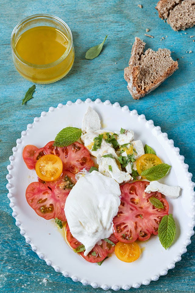 En verano, preparo muchísimo esta ensalada con albahaca u orégano, es una de mis preferidas. Y la burrata es una maravilla.