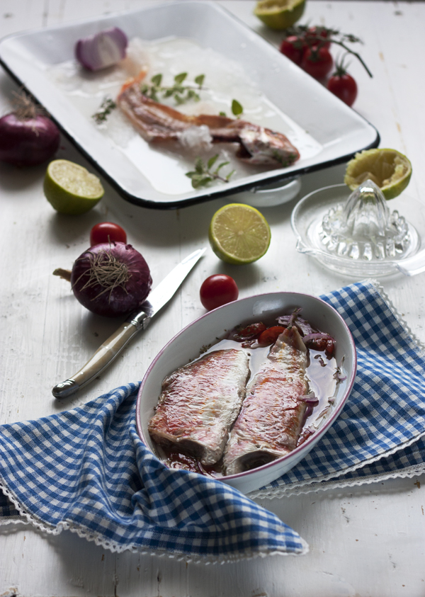 Sesión fotográfica de lujo, pero la receta me gusta tanto… El salmonete de roca es un manjar y preparado en marinada con esta vinagreta atrae a cualquiera! Besos