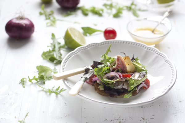 Me parece muy fresca con ese salmonete tipo cebiche y su toque de lima.. la pienso hacer en breve, preciosa además!! Besines!!