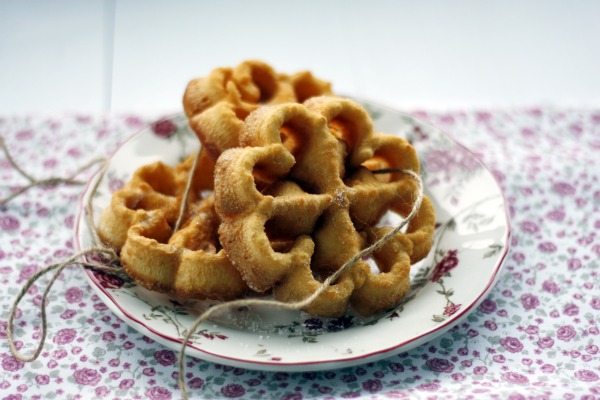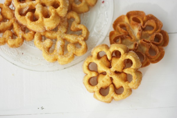 – Hacedlas de una en una, os será mas fácil y así ni el molde ni el aceite perderán calor. Además mientras una flor se dora, podéis rebozar de azúcar otra,. Eso si, sin perder de vista la sartén.