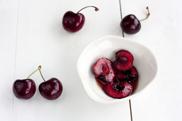 - 8-10 cerezas deshuesadas y partidas por la mitad.