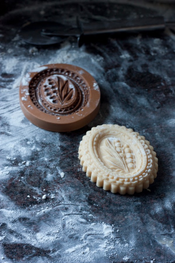 Lo de hoy ha sido bárbaro. Empezando, en primera posición, por supuesto, con estas galletas tan finas, delicadas y bonitas. ¡Si es que son de exposición, madre mía! Me las imagino en la boca con una textura y sabor del estilo a las shortbread escocesas, y lo mismo es un atrevimiento decirlo. Cuando estuve en Escocia, pude visitar una fábrica en la que elaboraban galletas escocesas y los moldes con los que antiguamente se hacían esas galletas eran también de madera, aunque los moldes no eran individuales como los de los springerle, sino en una tablilla.