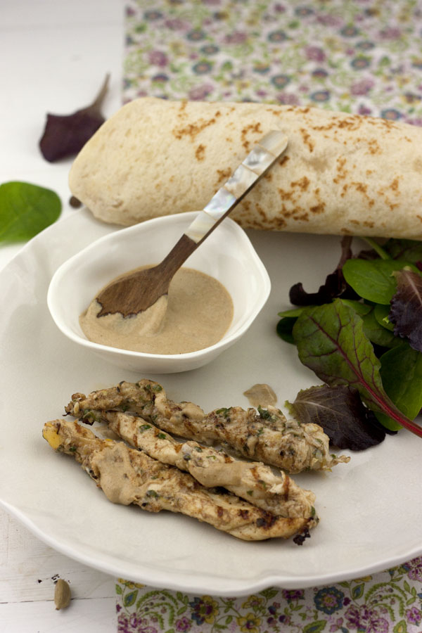 Lasuave y enrollable, la he rellanado con un pollo Shawarma, delicioso, marinado durante 24 horas en frío, con una mezcla de limón, tomate y cebolla rallada, y con especias varias (cardamomo, Pimienta de Jamaica, vainilla y canela). Se complementa la receta con una salsa Tahini (pasta de semillas de sésamo tostado).Un placer para los sentidos, os lo aseguro. En contra de lo que pensaba inicialmente, la incorporación de canela y vainilla, junto a semillas de tan marcado sabor, como el cardamomo y la pimienta de Jamaica, es deliciosa. La receta en la revista “BBCGood Food”.