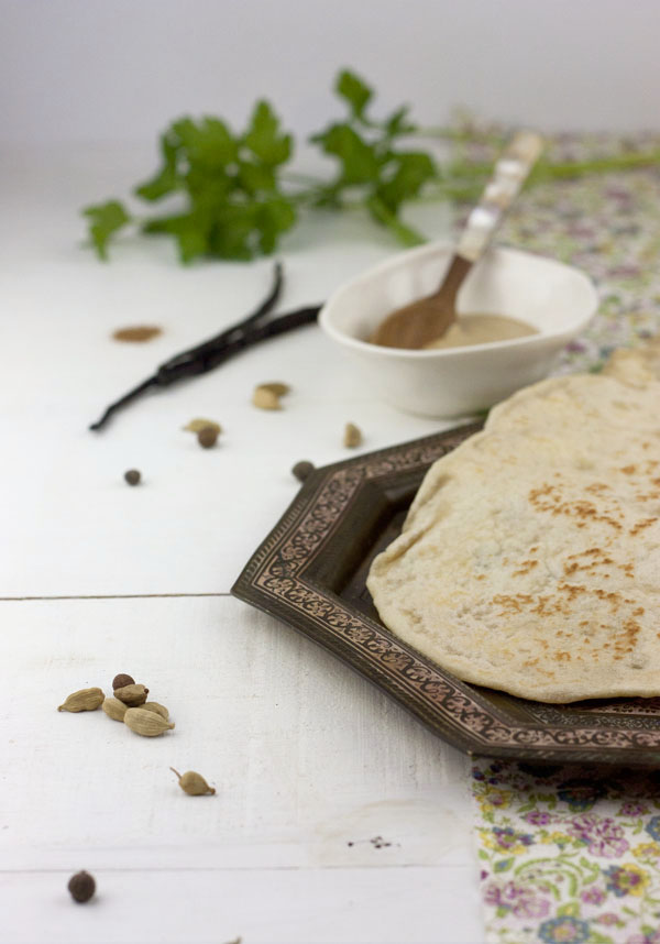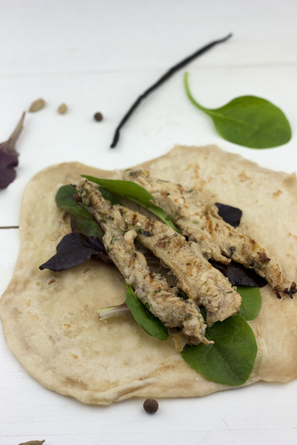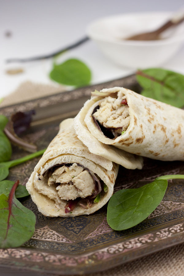 Lasuave y enrollable, la he rellanado con un pollo Shawarma, delicioso, marinado durante 24 horas en frío, con una mezcla de limón, tomate y cebolla rallada, y con especias varias (cardamomo, Pimienta de Jamaica, vainilla y canela). Se complementa la receta con una salsa Tahini (pasta de semillas de sésamo tostado).Un placer para los sentidos, os lo aseguro. En contra de lo que pensaba inicialmente, la incorporación de canela y vainilla, junto a semillas de tan marcado sabor, como el cardamomo y la pimienta de Jamaica, es deliciosa. La receta en la revista “BBCGood Food”.