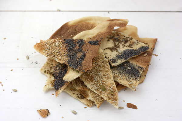 Tu versión de pan lavash crujiente, con toooda esa variedad de especias me ha dejado tocada. Ya simplemente el mío, con su sésamo tostado, me ha encantado y lo hemos comido como quien se come unas patatas fritas de bolsa, así que con tus especias … ¡qué rico! Yo tendría que prescindir de las de amapola, porque mi marido es alérgico, así que imagínate en qué podría terminar un simple desliz …