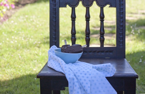 Yo lo que hago ahora es con ayuda de una espátula pequeña reparto la cobertura rápidamente para que no se engrose tanto. No queda muy lisita como veis, pero cubre todo el helado.