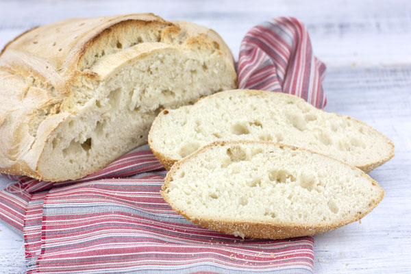 Una delicia de pan. Corteza gruesa y blanquecina, y miga prieta que aguanta cualquier relleno o topping caliente. El pan ideal para una buena sopa de ajo o de pan.