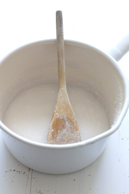 Vertemos la leche de coco en un cazo mediano y batimos bien para romper todos los grumos que suelen aparecer al encontrase tanto tiempo enlatada. Añadimos entonces la nata y llevamos a fuego medio removiendo suavemente de vez en cuando, hasta que veamos que la mezcla sube. Retiramos del fuego y reservamos.