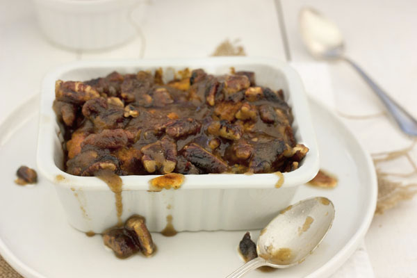 El pudding, así sin mas está espectacular, vamos que si lo presentas de postre de final de comida de las fiestas, bien vestido, nadie supondrá que hablamos de uno de esos postres de aprovechamiento. Pero es que además va regado con una salsa de caramelo y pecanas tostadas que quita el sentido…… Que sabor, que texturas…. Os aconsejo de veras que no dejéis de probarlo en algún momento, os sorprenderá el resultado.