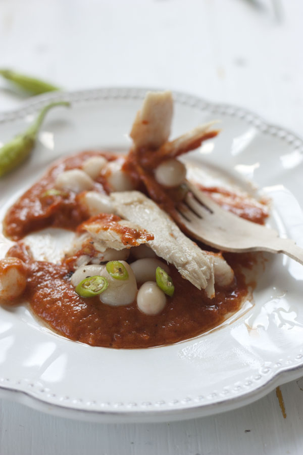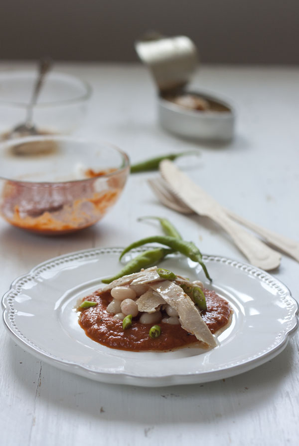 Vamos con la receta, que con un buen producto es de locura, la cremosidad de los granos de pochas se funden con la crema de pimientos confitados y la textura jugosa de la ventresca. Como os decía una delicia.