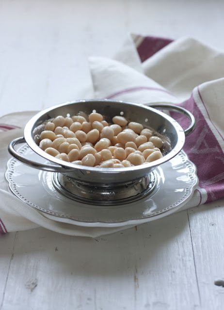 Una vez cocinadas, las escurrimos el caldo, que reservamos para otra preparación y retiramos unos 250 gr de los granos cocidos.