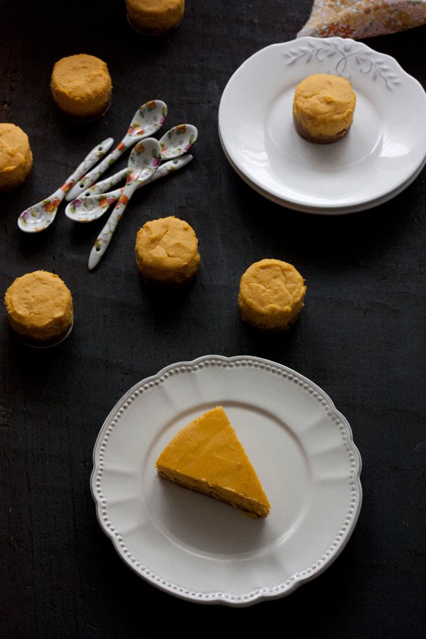 Servimos tibio o frío acompañado de nata fresca. Una delicia cremosa y suave, con la que podemos deleitarnos sin demasiados remordimientos y que vale la pena que preparéis, si os gustan los cheesecakes y la calabaza.