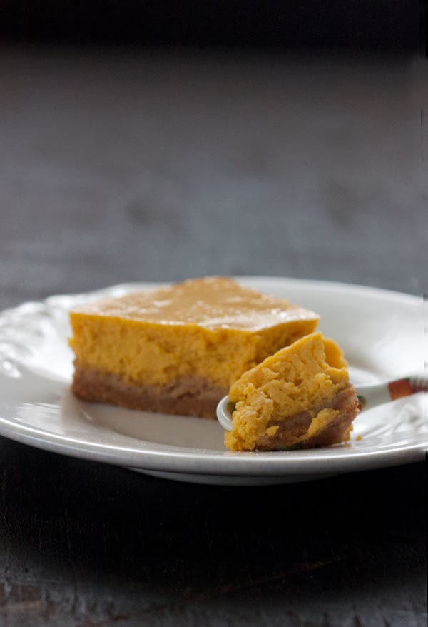 Servimos tibio o frío acompañado de nata fresca. Una delicia cremosa y suave, con la que podemos deleitarnos sin demasiados remordimientos y que vale la pena que preparéis, si os gustan los cheesecakes y la calabaza.
