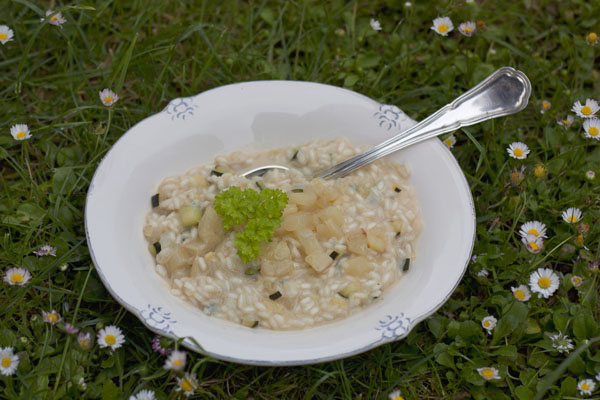 Como tod@s yas sabéis, el risotto no es sino un plato de arroz cremoso, que se prepara con una variedad especifica de arroz, “carnoli”, “arborio” principalmente, debido a su alto contenido en almidón y a que son unos arroces que no se rompen facilmente.