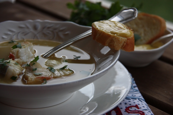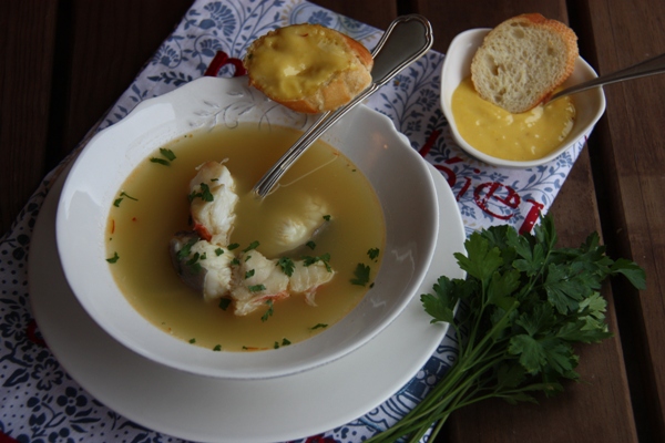 Esta sopa es muy parecida a la sopa de pescado que tenemos aquí en el Norte. Quizás la introducción del hinojo y las hierbas aromáticas la hacen un poco diferente, pero en lo sustancial se asemeja mucho.Tiene como peculiaridad, el hecho de que habitualmente va acompañado de una especie de mahonesa (Ralloui), realizada con patata y caldo de pescado.
