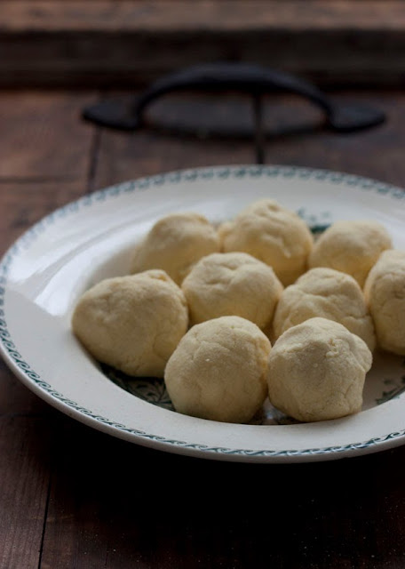 - Formamos los panecillos en forma de torta. Aplanar cada bola, solo con la mano, pero con mucho cuidado de que no se nos abra la torta y se nos rompa,
