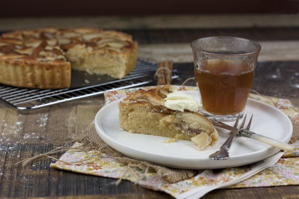 La base de masa quebrada azucarada, es crujiente, y el relleno de manzanas tiernas y con un regusto muy suave a licor, que se complementa con una crema de almendras (frangipane) aromatizada también con Calvados. Una absoluta delicia, delicada, suave y elegante en el paladar.