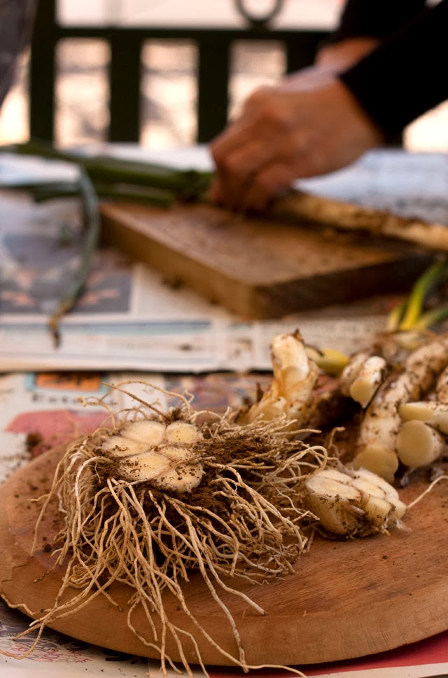 Gracias a mi amiga Nani y a Ivo, tuve la suerte de probar por primera vez los calçots, y no solo eso, sino el placer de disfrutar de una calçotada en toda regla bajo el suave sol mediterraneo de Febrero, eso si con el ritual completo de extraer los calçots de la tierra, asarlos y degustarlos con el consabido “babero” y salsa, en la inmejorable compañía de unos amigos.