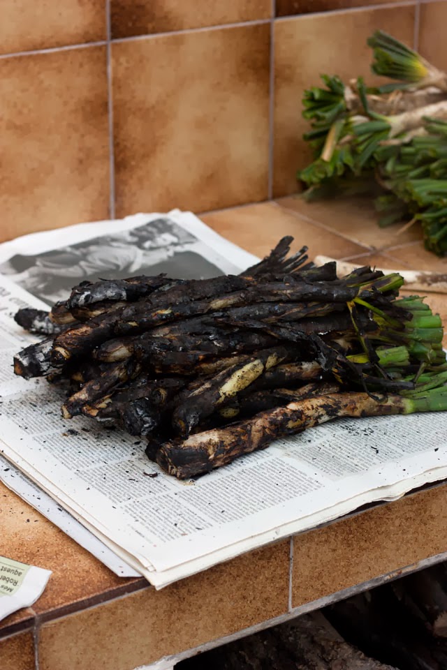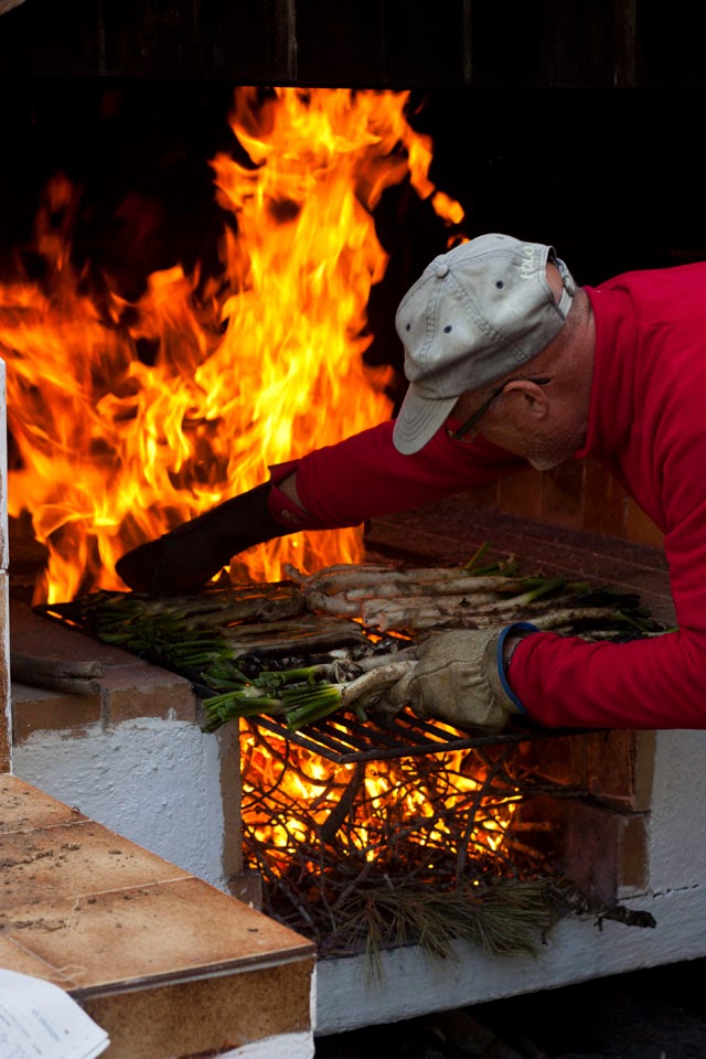 Se trata de asar directamente sobre la llama viva del sarmiento los calçots, una variedad de cebolletas frescas, especialmente cultivada para este propósito, de sabor suave, jugosa y tierna en textura.